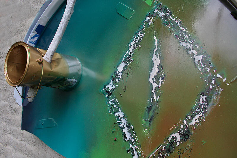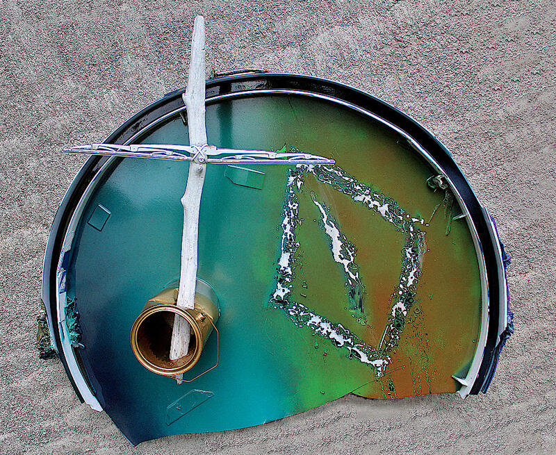 Svatý kopeček 15. 11. 2014 - plast, plech, dřevo, spray, 100 x 130 x 30 cm, 2021