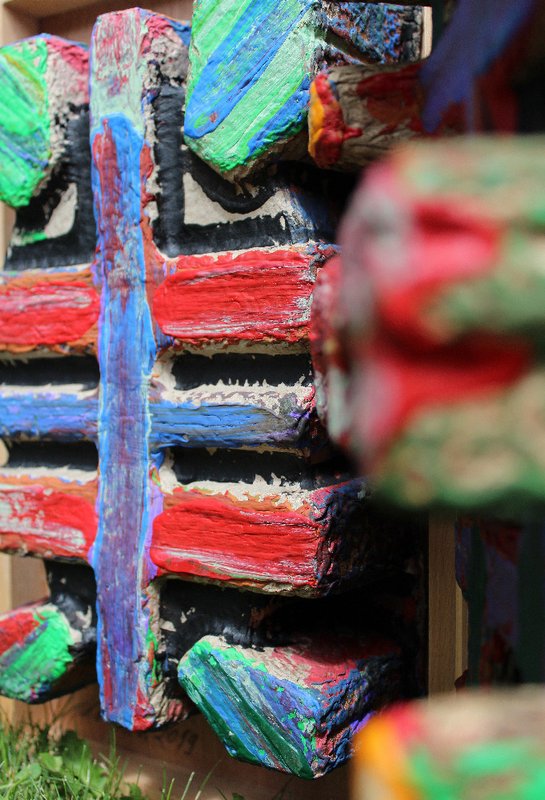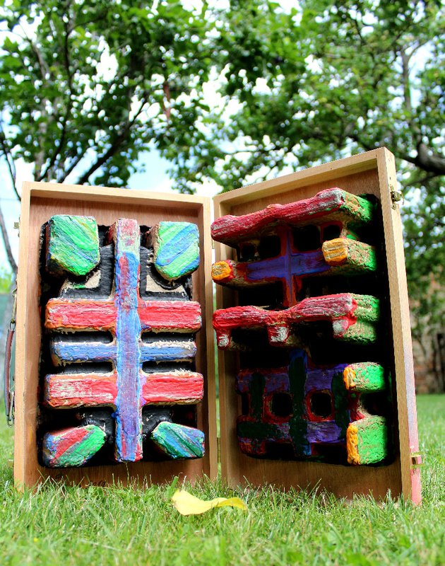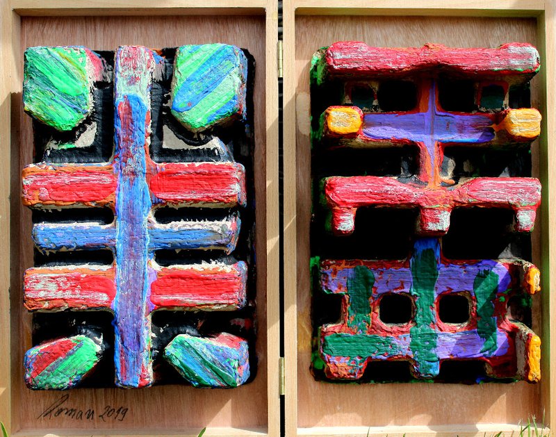 Věrozvěsti - komb. technika, dřevo, 37 x 46 cm, 2019