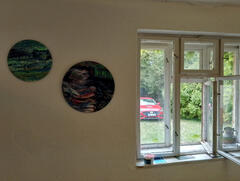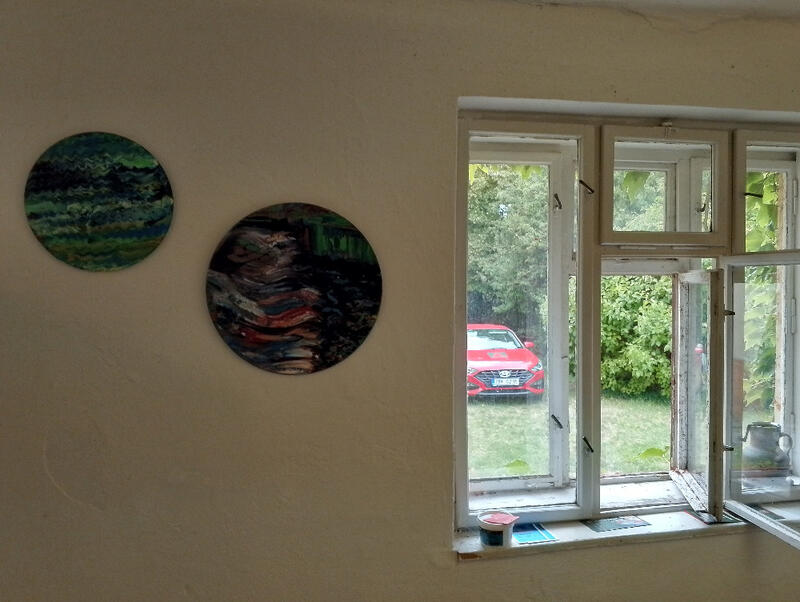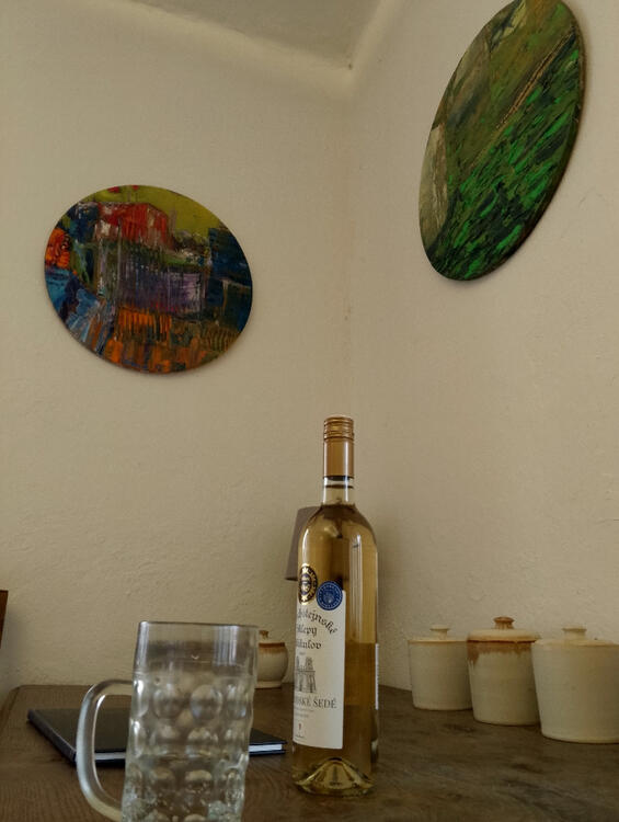 Tématu vody, vodním stavbám i dějům na řece Dyji se malíř Roman Šafránek věnuje dlouhodobě. Je to řeka, která je častým cílem jeho procházek i nekonečným zdrojem vizuální inspirace. V dobrém i zlém. Protože u Jezu Bulhary vidíte vše. Můžete se zde potkat s vodními velikány - úctyhodnými sumci, amury i tolstolobiky, ale v letních měsících zde často plují také zelené chomáče sinic, pod kterými umírají i ty největší ryby...