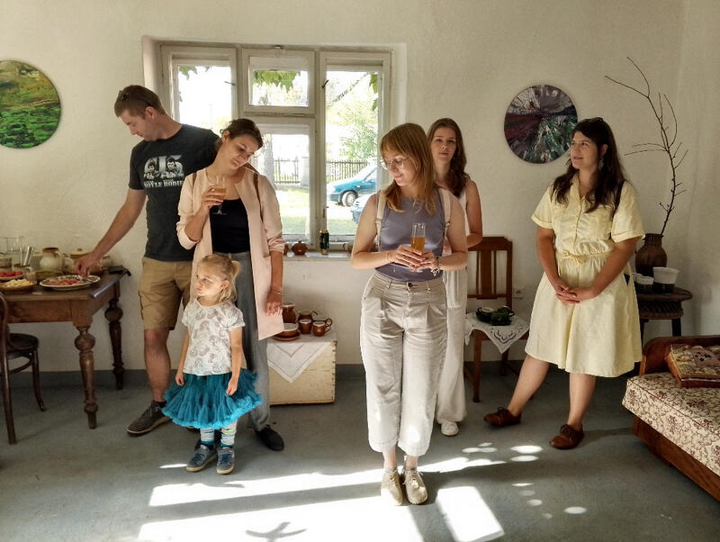 A kdo je Roman Šafránek? Svébytný umělec, který žije na kraji staré části obce Bulhary. V jeho Ateliéru Stodola vznikají malby letních cyklů, jejichž jádrem je autorova osobitá reflexe viděné každodenosti. Malby vždy nesou konkrétní obsah, zároveň však lavírují na hranici abstrakce. Tak, jako když se racčí křídlo dotkne hladiny a objeví se kruhové obrazce z fragmentů okolí, které zanikají až u břehů.